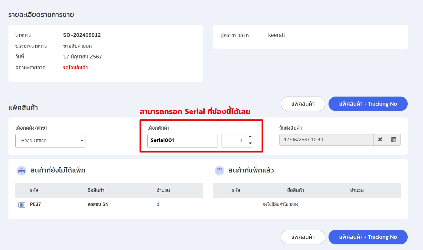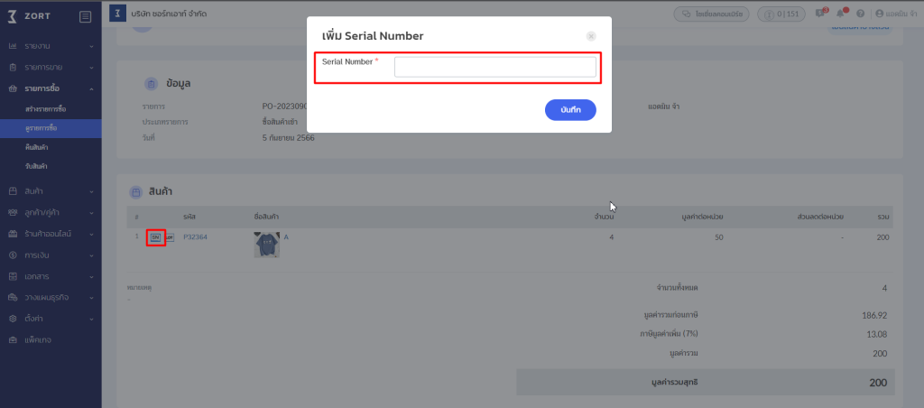 - อัปเดต Serial No. และการใช้เลข Serial ในการสแกนสินค้า