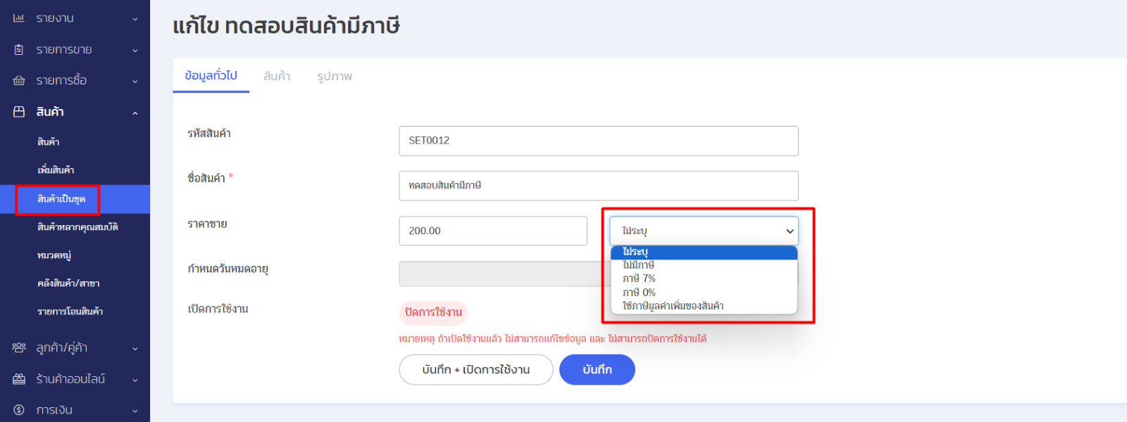 - สินค้าเป็นชุดเพิ่มช่องสำหรับระบุหน่วยสินค้า อ่านคู่มือการใช้งาน คลิก