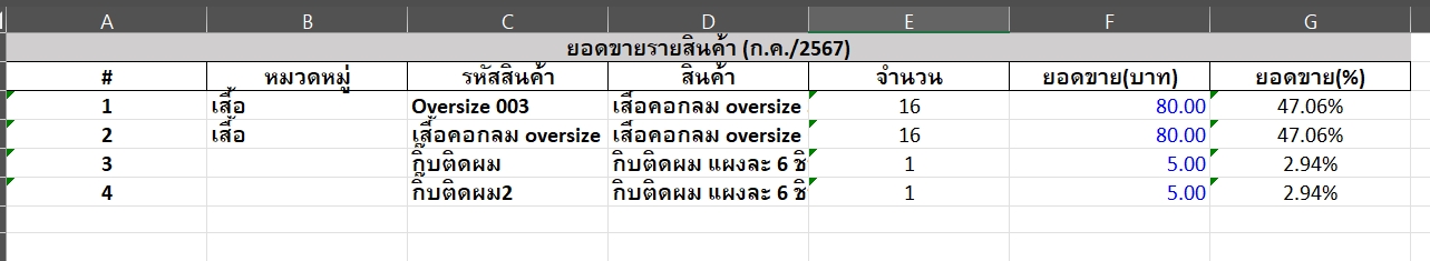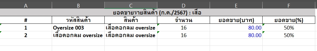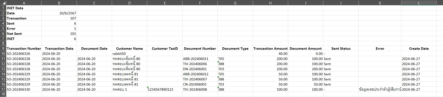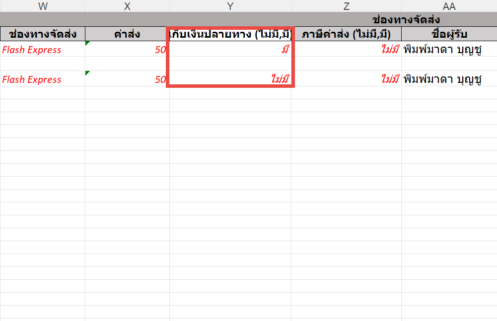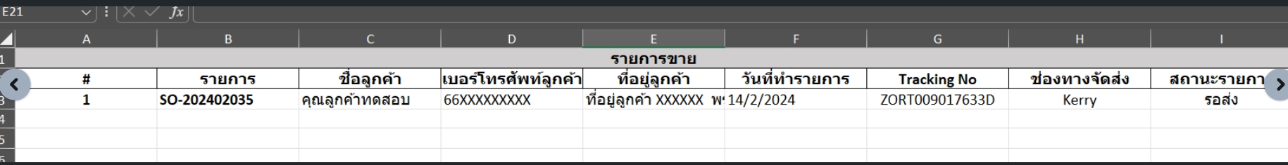ตัวอย่างรายการขายแบบเก็บเงินปลายทางที่นำเข้าด้วยไฟล์ Excel