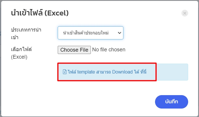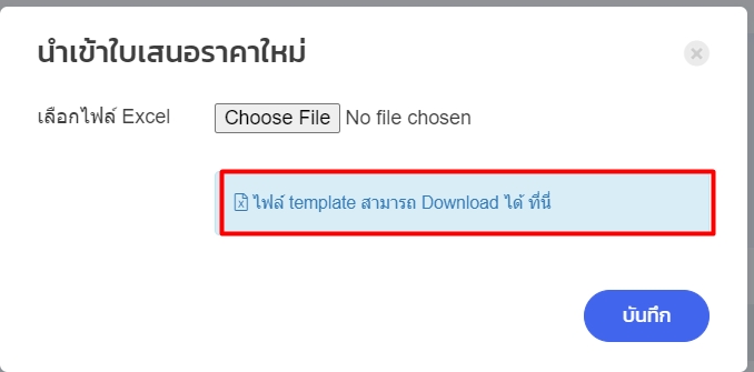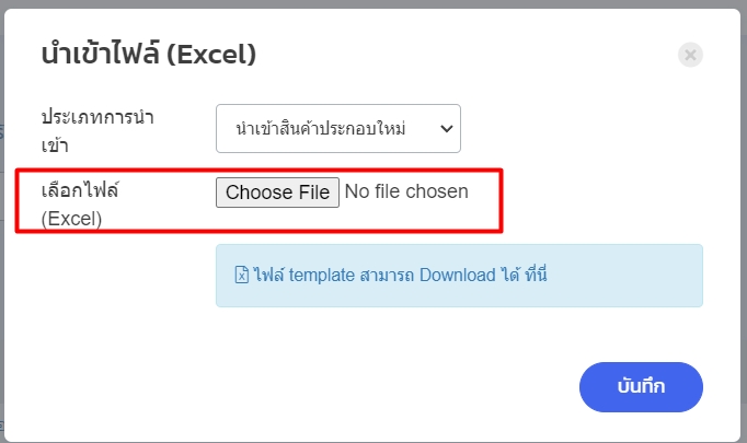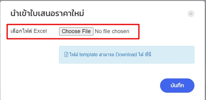 - เลือกไฟล์ template สามารถ Download ได้ ที่นี่
