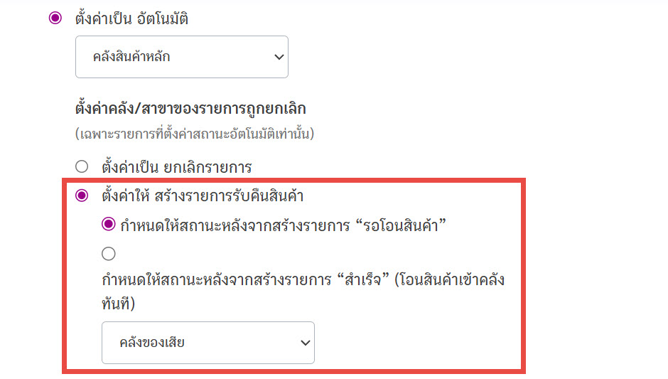 เพิ่มการตั้งค่าสถานะ รอโอน สําหรับรายการรับคืนสินค้าจากช่องทาง Marketplace
