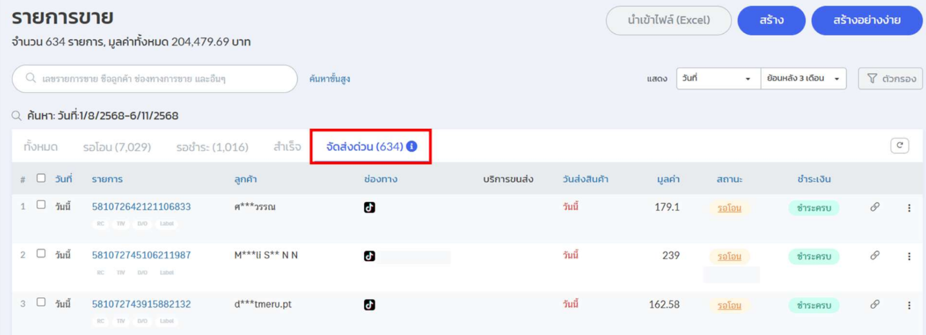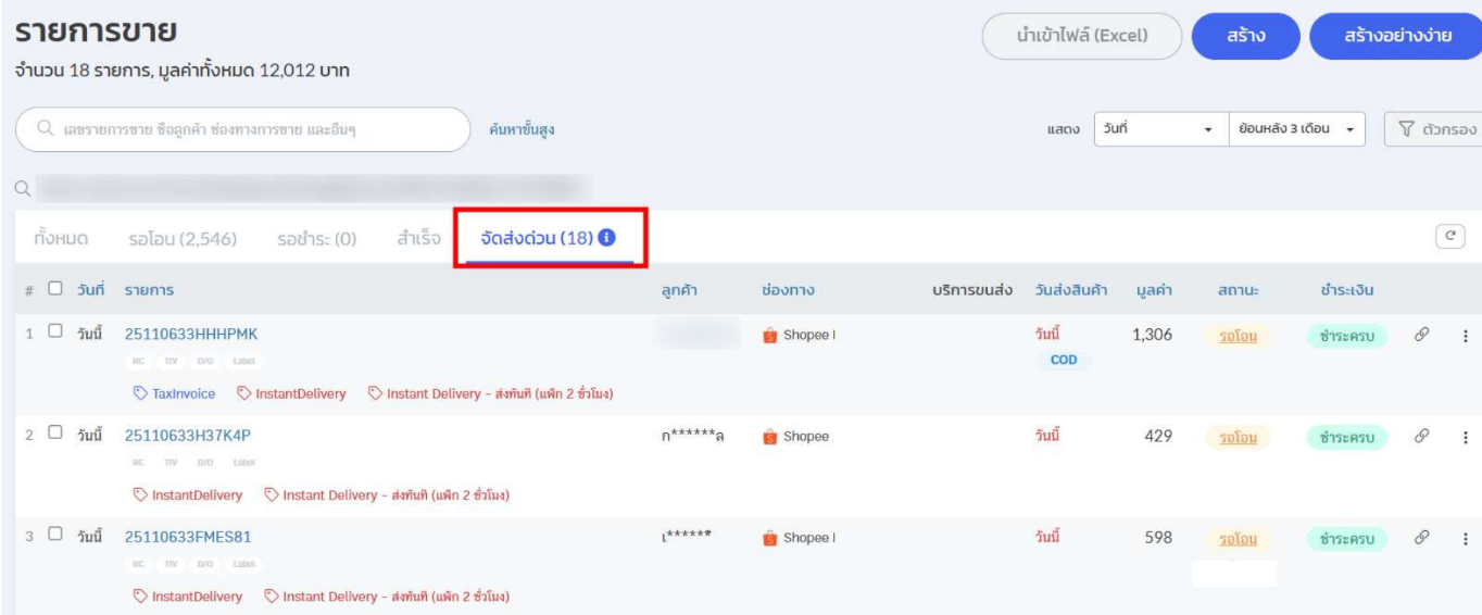 4. เพิ่มแท็บ “จัดส่งด่วน” ในหน้ารายการขาย สำหรับออเดอร์จาก Marketplace อ่านคู่มือการใช้งาน คลิก