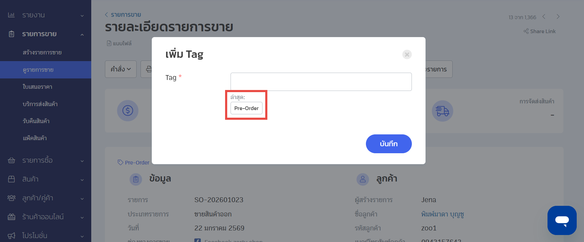 - จัดการข้อมูลลูกค้า – กรอกเบอร์โทรฯลูกค้าได้